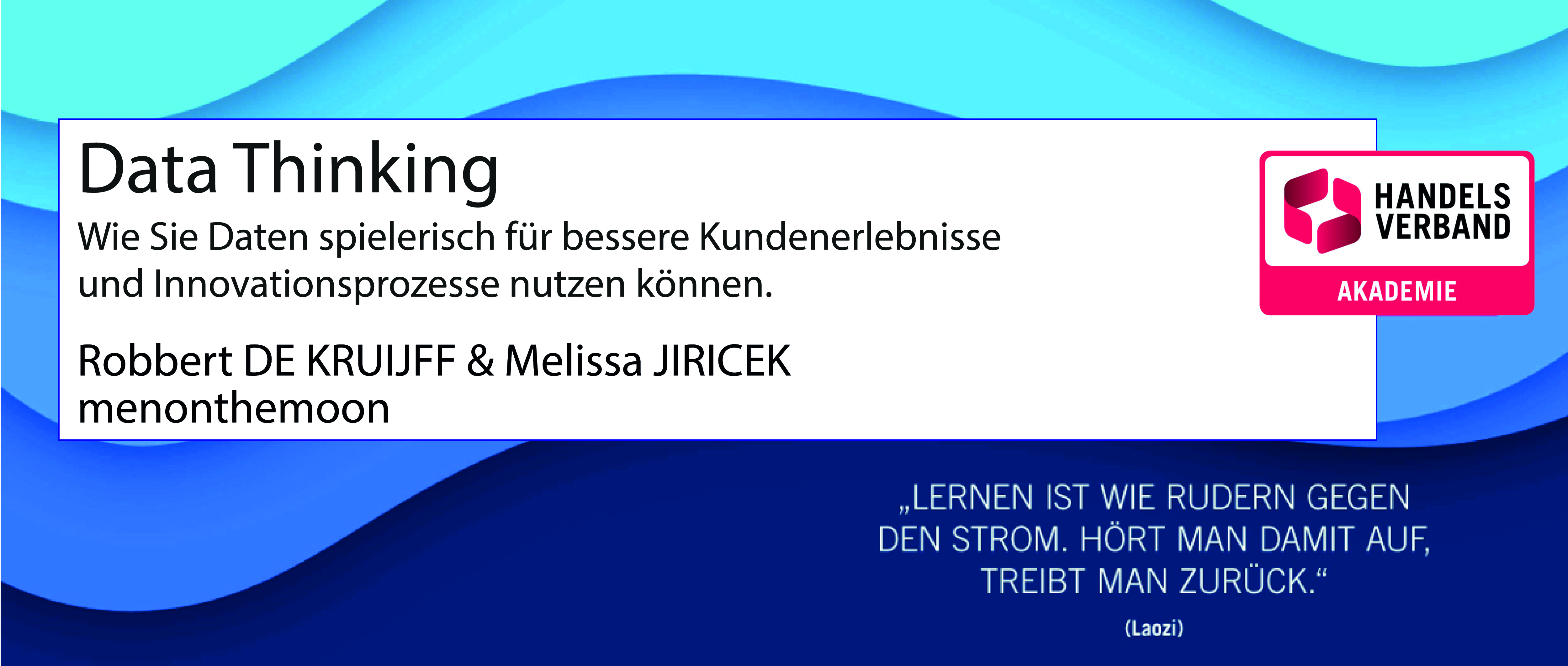*Data Thinking ist eine Kombination aus Data Science, wo Daten durch Vorhersagen oder Analysen nutzbar gemacht werden und Design Thinking, einer Innovationsmethode, die zur Problemlösung und zur Entwicklung neuer Ideen führen soll. Das Ziel ist immer Produkte und Lösungen zu finden, die die Anwender begeistern und überzeugen.