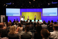 Linus Glaser, Country Manager bei Zalando, gab in der zweiten Keynote einen spannenden Einblick in die Welt des Berliner Online-Versandhändlers. Was ist das Konzept einer Plattform? Sie soll Menschen zusammenbringen und vernetzen. Darauf beruht auch das simple Erfolgsrezept von Zalando. „Man muss heute da sein, wo der Kunde ist. Der Kunde ist digital unterwegs, daher müssen auch die Händler und Marken dort hin“, lautete das Fazit von Glaser.