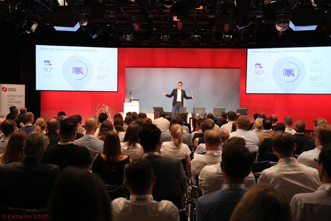 Wie die Reise des Kunden in Zeiten von Omnichannel abläuft, war Thema des nächsten Programmpunkts. Die Ergebnisse der vom Handelsverband gemeinsam mit Google und der österreichischen Post beauftragten, groß angelegten Customer Journey Studie "Expedition Kunde" präsentierte Thomas Schwabl, Geschäftsführer des Instituts Marketagent.com. „20 Prozent der befragten Kunden nutzen in einem einzigen Kaufprozess sowohl Online-Recherche als auch persönliche Beratung“ verwies Schwabl auf die zentrale Bedeutung des Internets als digitaler Showroom für den stationären Handel. Interessant ist auch der Erfolgsfaktor Paketzustellung bei Online-Bestellungen: „Die Zufriedenheit mit der Zustellung hängt eng mit der Wiederkaufsabsicht zusammen“, bestätigte der Studienleiter.