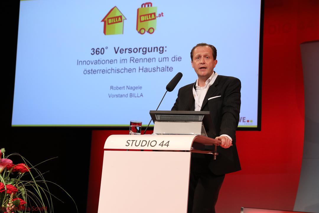 Der Handel steckt mitten drin in der digitalen Transformation. Wie schwer es für heimische Händler ist, hier immer am Ball zu bleiben und innovative Technologien als First Mover umzusetzen, illustrierte Billa Vorstand Robert Nagele in seiner Best Practice Präsentation. Von der Gründung des Billa Vorteilsclubs über den Start des ersten Online-Shops und der Bio-Erfolgsmarke "Ja. Natürlich!" bis hin zum Einsatz von Electronic Shelf Labels und dem Konzept der 360° Haushaltsversorgung spannte der Top-Manager seinen Vortrag. „Die Welt wird immer komplizierter, die Preise immer weniger durchschaubar. Umso entscheidender ist es, die individuellen Wünsche der Kunden in puncto Angebot zu kennen“, so der Rat von Nagele.