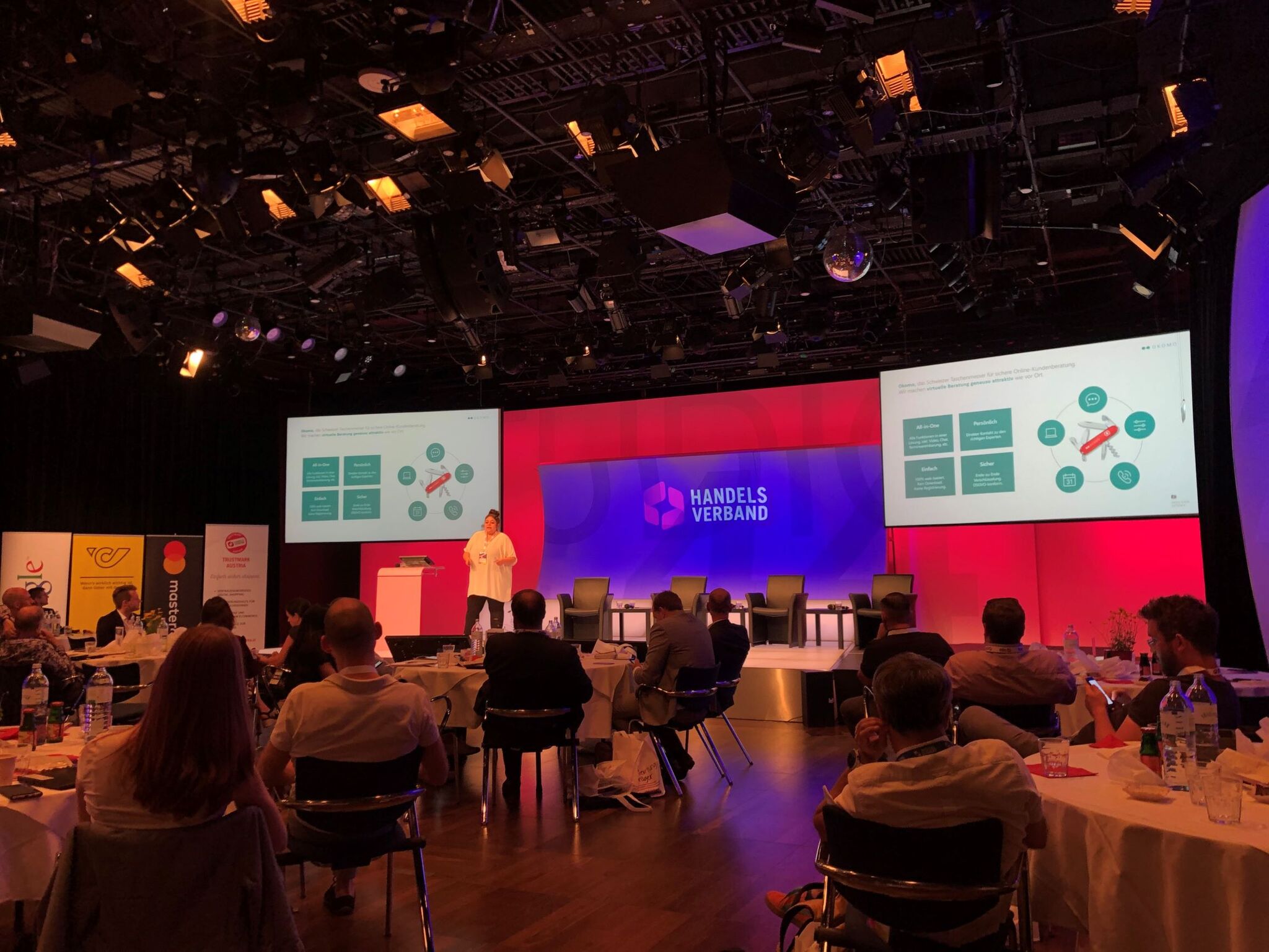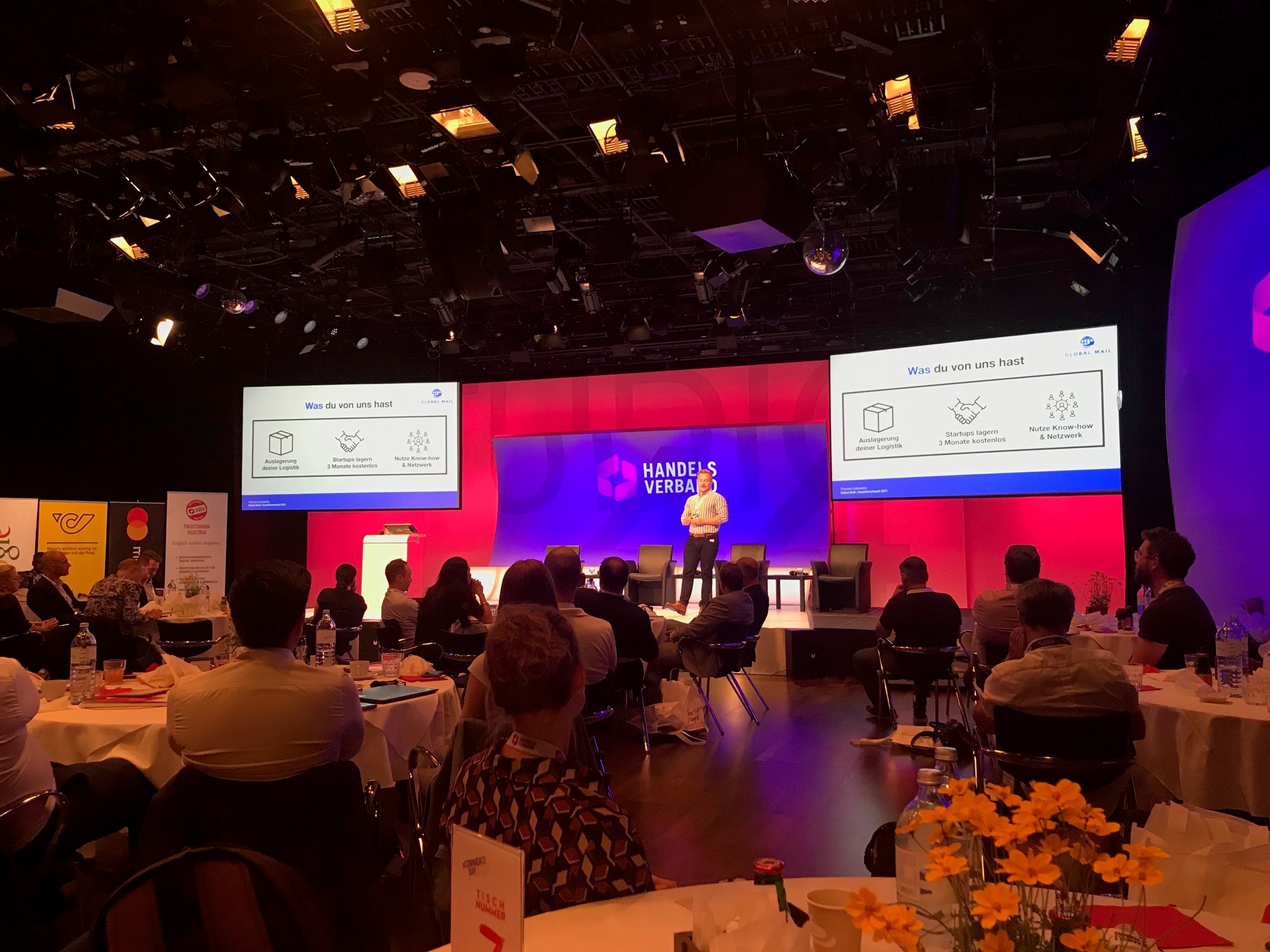 In der Startup Session wurde von den CEOs bzw. Vertreter:innen von ALLStore, Swilox, MYFLEXBOX, Okomo und Global Mail gepitcht was das Zeug hält. Den Entscheidungsträger:innen im Publikum wurden innerhalb von drei Minuten innovative Lösungen von der Logistikoptimierung bis hin zur Webshop-Implementierung vorgestellt.