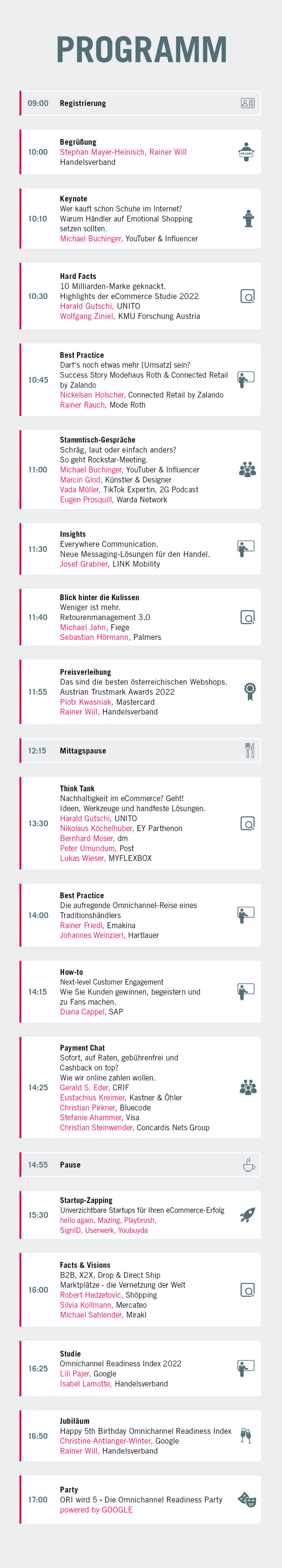 Post-Vorstandsmitglied Peter Umundum, Google Österreich-Chefin Christine Antlanger-Winter, shöpping-Geschäftsführer Robert Hadzetovic, Johannes Weinzierl (Hartlauer), Rainer Rauch (Mode Roth), Bernhard Moser(dm), Silvia Kollmann (Mercateo Unite), Eustachius Kreimer (Kastner & Öhler), Harald Gutschi (UNITO/Otto), Diana Cappel (SAP), Rainer Friedl (Emakina), Josef Grabner (LINK Mobility), Nick Holscher (Connected Retail by Zalando), Michael Jahn (FIEGE Austria), Sebastian Hörmann (Palmers), Nikolaus Köchelhuber (EY), Piotr Kwasniak (Mastercard), Christian Steinwender (Concardis Nets Group), Lili Pajer (Google Austria), Christian Pirkner (Blue Code), Michael Sahlender (Mirakl), Stefanie Ahammer (VISA), Lukas Wieser (MyFlexbox) und Wolfgang Ziniel (KMU Forschung Austria) sowie Isabel Lamotte (Handelsverband) rundeten das erstklassige Lineup ab.