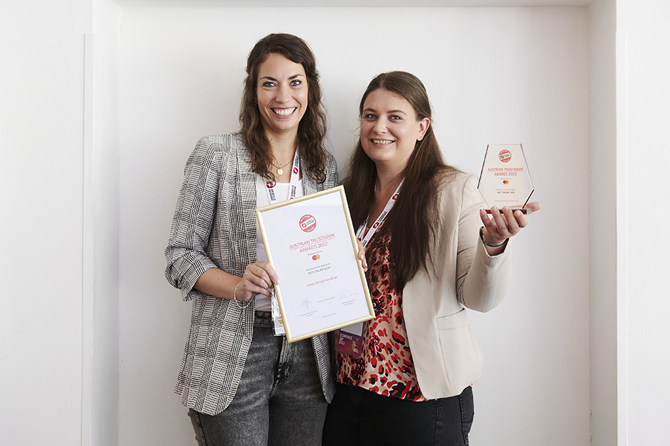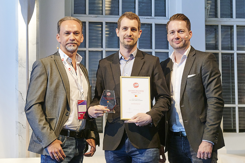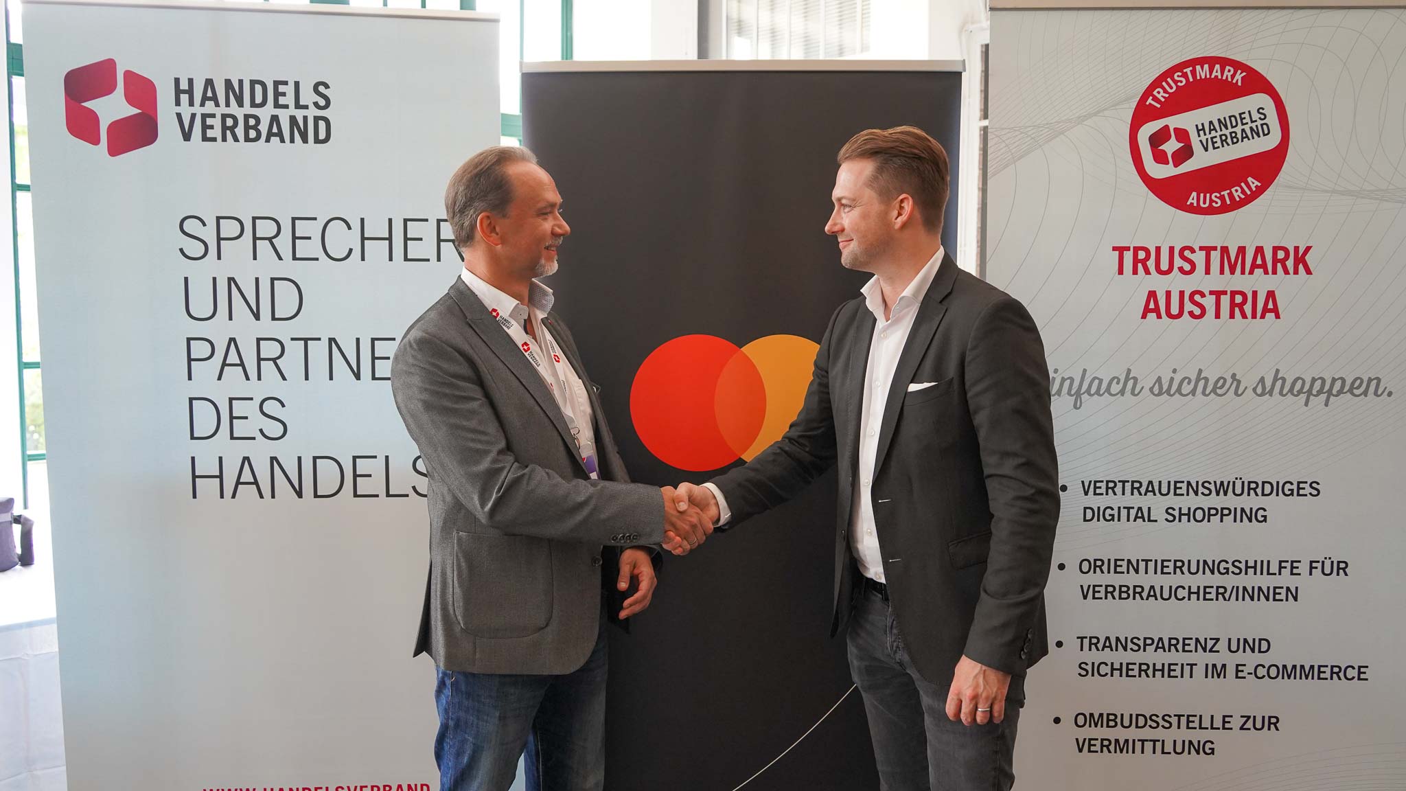 Ein Highlight der Veranstaltung war die Verleihung des heiß begehrten Austrian Trustmark Awards 2022 unter der Schirmherrschaft von Mastercard durch Piotr Kwasniak (Head of Business Development Digital, Mastercard) und Rainer Will für herausragende, innovative eCommerce- und Omnichannel-Lösungen.