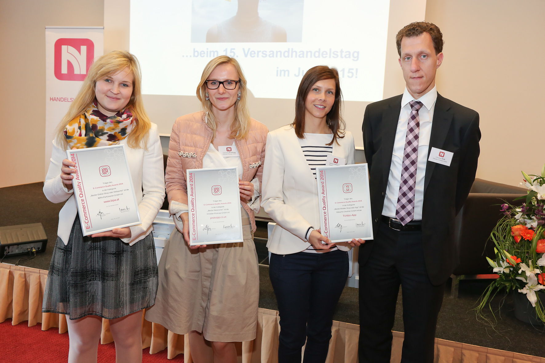 Zum Abschluss der Tagung verliehen Harald Gutschi und EMOTA-Generalsekretärin Susanne Czech die "E-Commerce Quality Awards 2014". Über die Auszeichnung in der Kategorie "Bester Online-Shop oder Webportal" durfte sich BIPA freuen. In der Kategorie "Bester Mobile-Shop oder App" behauptete sich die Eduscho (Austria) GmbH mit der Tchibo App. Erstmals wurde auch ein Award in der Kategorie "Bester Newcomer" vergeben, den die Christian Prokopp GmbH für sich entscheiden konnte. Für die Awards nominiert waren alle Träger der Gütesiegel "E-Commerce Quality" und "M-Commerce Quality" des Handelsverbands. Die Preisträger wurden von einer unabhängigen Fachjury ausgewählt, die von der Zeitschrift Computerwelt, der Wirtschaftskammer, dem Handelsverband sowie den Vorjahressiegern beschickt wurde.