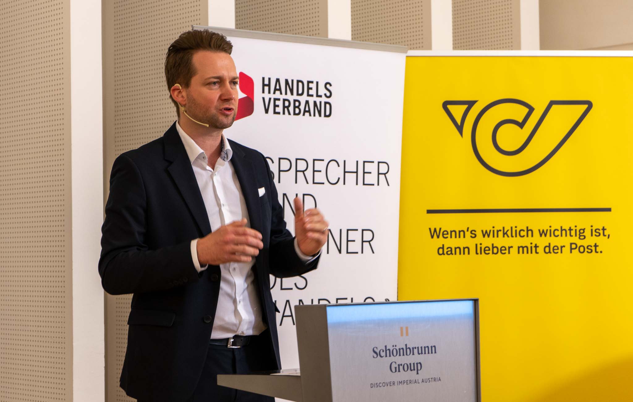 Das Programm des Handelskolloquiums versprach von Anfang an vielversprechend zu werden: Das spannende Warm-up und die Moderation des Events übernahm der Entrepreneur und Moderator Daniel Cronin. Handelsverband-Präsident Stephan Mayer-Heinisch eröffnete den Kongress mit einer motivierenden Ansprache über den erfolgreichen Umgang des Handels mit Corona und stellte mit dem AID-Modell konkrete Zukunftsperspektiven für die Wirtschaft in Aussicht, ganz nach dem Motto: „Never miss a good crisis.“ Auch Rainer Will teilte die feierlichen Nachrichten des Verbandsjubiläums „100 Jahre Handel“ mit dem Publikum und wies darauf hin, wie essenziell „Leben und Wirtschaften mit dem Corona-Virus“ sei. Er versprach sich als Geschäftsführer des Handelsverbandes weiterhin um die beste Interessensvertretung aller österreichischen HändlerInnen zu bemühen und im Umgang mit Politik und Medien Klartext zu sprechen.