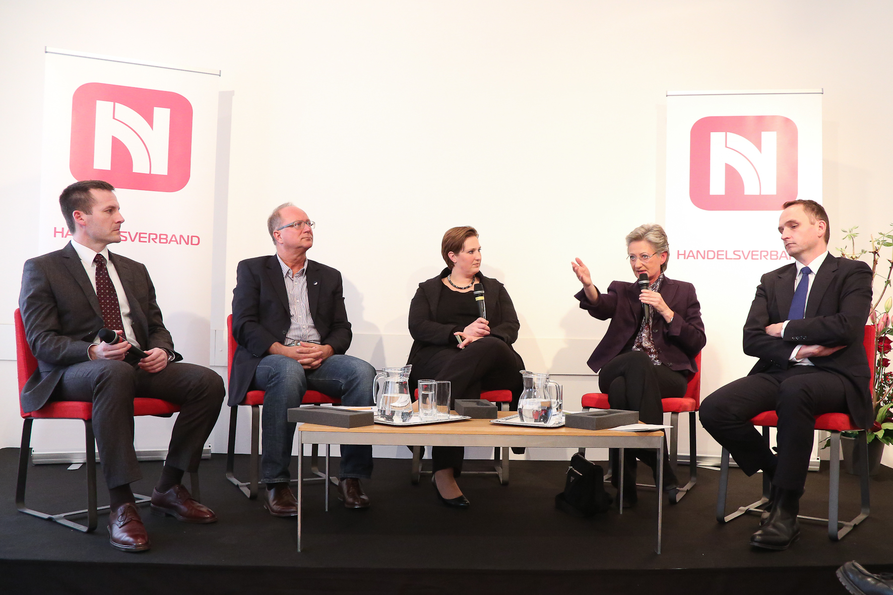 Immer mehr Handelsunternehmen können ihren Bedarf an Lehrlingen nicht decken. Ursachen sind die oft mangelnde Attraktivität des Handels als Arbeitgeber, aber auch die sinkende Leistungsfähigkeit des Bildungssystems. Darüber, wie der Handel sein Potenzial als Ausbildner wieder voll ausschöpfen könnte und welche politischen Maßnahmen getroffen werden können, diskutierten Merkur-Vorstand Klaus POLLHAMMER, Bildungsexperte Ueli STURSBERG, Lehrer Nikolaus GLATTAUER und Bundesministerin Claudia SCHMIED im Rahmen der ersten frei[handels]zone, der unabhängigen Dialogplattform für den Handel, am 8. April im Handelsverband.