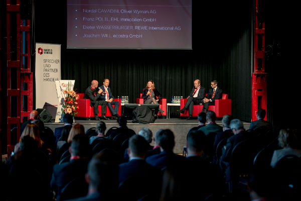 Über den idealen Standort von morgen und die Konkurrenz aus dem Web diskutierte eine hochkarätige Runde, bestehend aus Dieter Wasserburger, REWE International AG, Franz Pöltl, EHL Immobilien Gmbh, Nordal Cavadini, Oliver Wyman AG und Joachim Will, von der ecostra GmbH. „Lage, Lage, Lage hat auch heute noch Gültigkeit, Frequenz bleibt die wichtigste Komponente. Den Online-Handel nehmen wir nicht als Konkurrenz war. Wir leben im Multi-Channel-Zeitalter, da ist es selbstverständlich, dass man den Kunden auch diese Möglichkeit anbietet“, entzauberte Wasserburger das umgehende Schreckgespenst „Online“. Cavadini sieht günstigere Rahmenbedingungen für E-Commerce Pure-Player als für stationäre Händler, trotzdem erkennt er auch online viele ungelöste Probleme: „Unternehmen die die Last Mile betreiben, tun dies noch immer mit Verlusten. Nicht einmal in England funktioniert die letzte Meile“. Trotz Online-Boom beobachtet Pöltl eine ungebrochen starke Nachfrage nach Einzelhandelsimmobilien. „Es gilt „Big is beautiful“. Die schwachen Standorte fallen raus. Überall dort wo der Kunde einen eindeutigen Nutzen hat, wird der Standort funktionieren." „Auch zukünftig wird der weit überwiegende Teil stationär erwirtschaftet werden. Der Druck auf die Branche wird aber enorm werden. Erfolgreiche Läden werden als Destinationen erlebt. Die Ware tritt dabei in den Hintergrund. Es geht in Zukunft um den Einkauf als ein soziales Ereignis“, wagt Will einen Blick in die Zukunft.