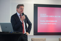 „Gute Konjunktur, ausgezeichnete Konsumentenstimmung – beste Aussichten also für den österreichischen Handel, wenngleich die Dynamic in den nächsten Jahren wieder etwas abnehmen wird“, so die Einschätzung von Stefan Bruckbauer. Der Chefökonom der UniCredit Bank Austria begeisterte die Zuhörer mit lehrreichen Statistiken, glasklaren, kurzweiligen Analysen und seinem Plädoyer für eine gerechtere Gesellschaft mit einer möglichst fairen Einkommensverteilung: „Je ungleicher die Einkommensverteilung, desto geringer das Wirtschafswachstum.“ Bruckbauer geizte nicht mit Lob an der heimischen Politik der vergangenen zwei Jahre, insbesondere die jüngste Steuerreform habe viel gebracht. Auch die staatliche Umverteilung von oben nach unten funktioniere in Österreich vergleichsweise gut.