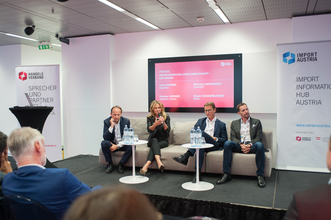 Welche heimischen Lagen haben Zukunft? Diese Frage stand im Zentrum einer hochkarätig besetzten Podiumsdiskussion, bestehend aus Hania Bomba (RegioPlan), Hannes Lindner (Standort + Markt), Michael Oberweger (Comfort) und Dieter Wasserburger (REWE).