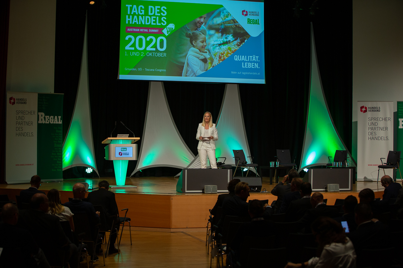 300 Entscheidungsträger/innen des heimischen Handels diskutierten von 1. bis 2. Oktober beim TAG DES HANDELS gemeinsam mit ihren Partnern entlang der Wertschöpfungskette und hochkarätigen Vertreter/innen der Politik darüber, wohin sich der Handel in Zeiten der globalen Corona-Krise entwickelt. Die 16. Auflage des jährlichen Retail-Pflichttermins fand erstmals an zwei Tagen im exklusiven Ambiente des Toscana Congress Gmunden am Traunsee statt und wurde von Handelsverband-Präsident Stephan Mayer-Heinisch, Handelsverband-Geschäftsführer Rainer Will, REGAL-Geschäftsführer Roland Pirker und dem Gmundener Bürgermeister Stefan Krapf eröffnet.