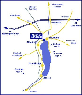 Für eine stressfreie Anreise mit dem Auto empfehlen wir eine Anfahrt über die West-Umfahrung (B 145) und nicht durch das Ortszentrum Gmunden (B 120)!