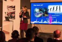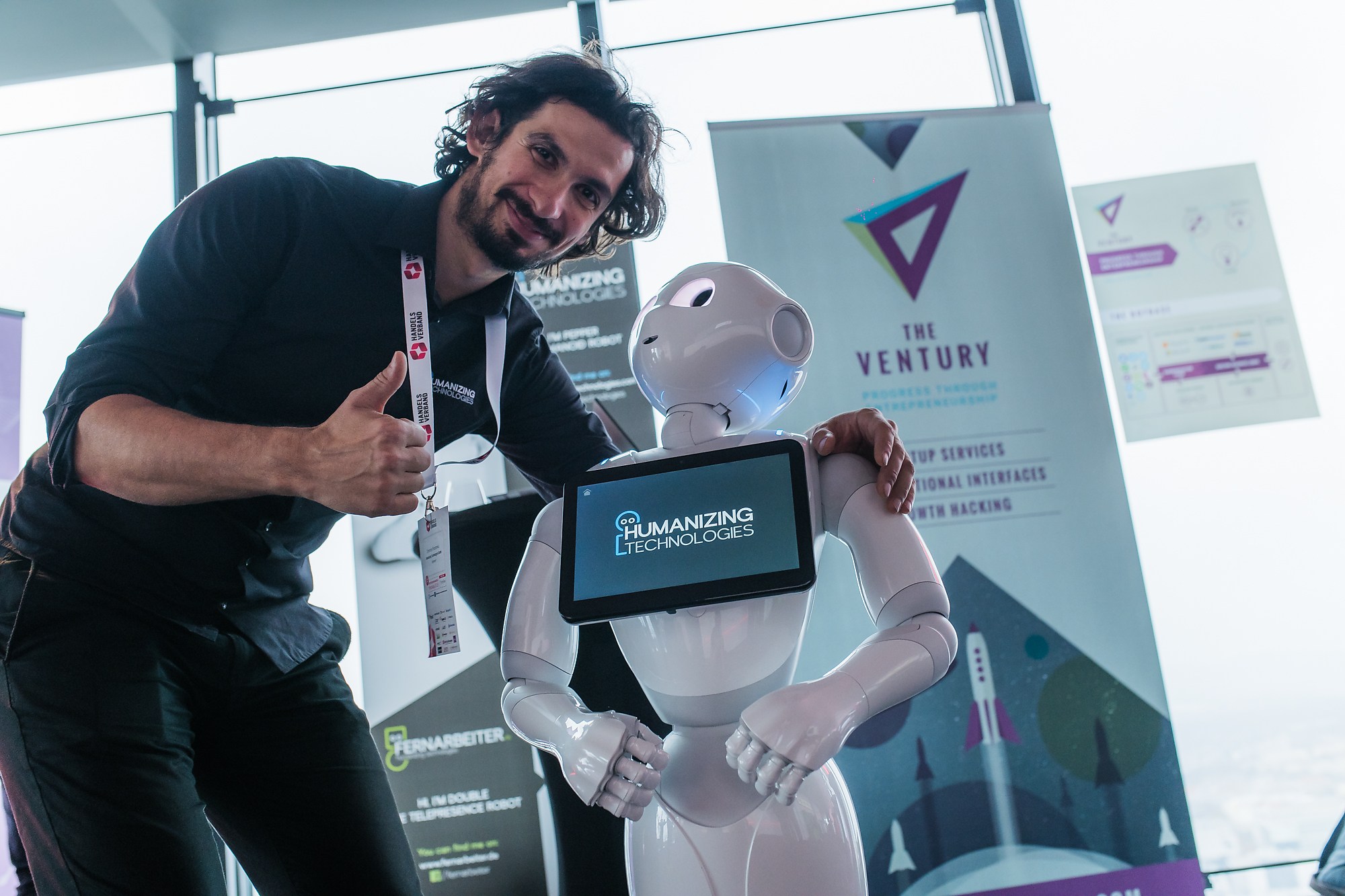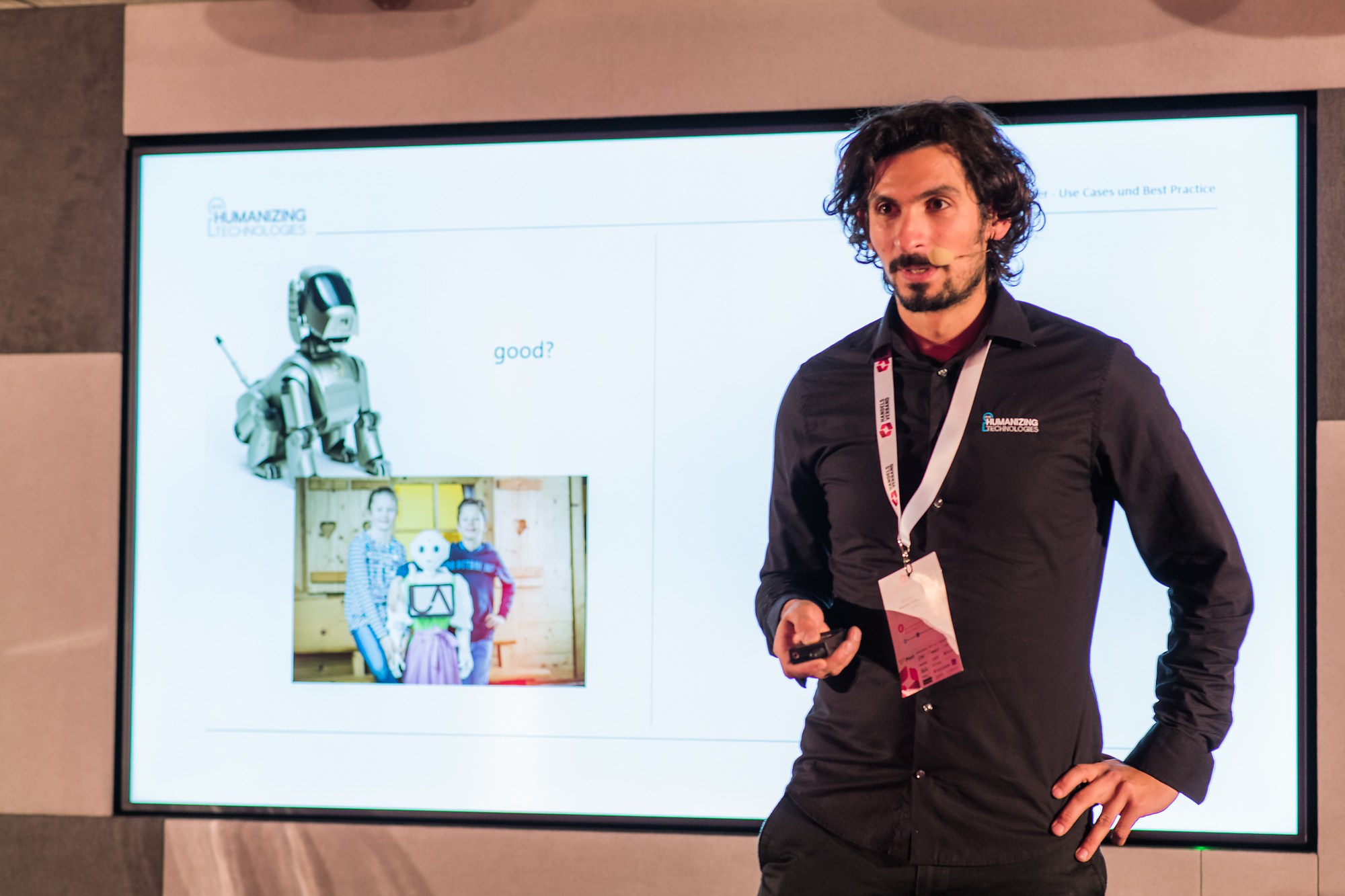 Mit Christina Wilfingers (Microsoft) Präsentation über die ethischen Implikationen der künstlichen Intelligenz gingen die Pecha Kucha Vorträge in ihre finale Runde. Stefan Novoszel, Senior Business Solution Manager von Zühlke Engineering, sprach über die Transformation der Customer Experience und der Supply Chain mithilfe von Mixed Reality Anwendungen. Dimitrios Prodromou, CTO von Humanizing Technologies, lieferte eine dynamische Tour de Force rund um die Einsatzgebiete und den aktuellen Entwicklungsstand in der Robotik. Im Gepäck hatte er Pepper – den zurzeit fortschrittlichsten humanoiden Roboter, der im Handel erhältlich ist.