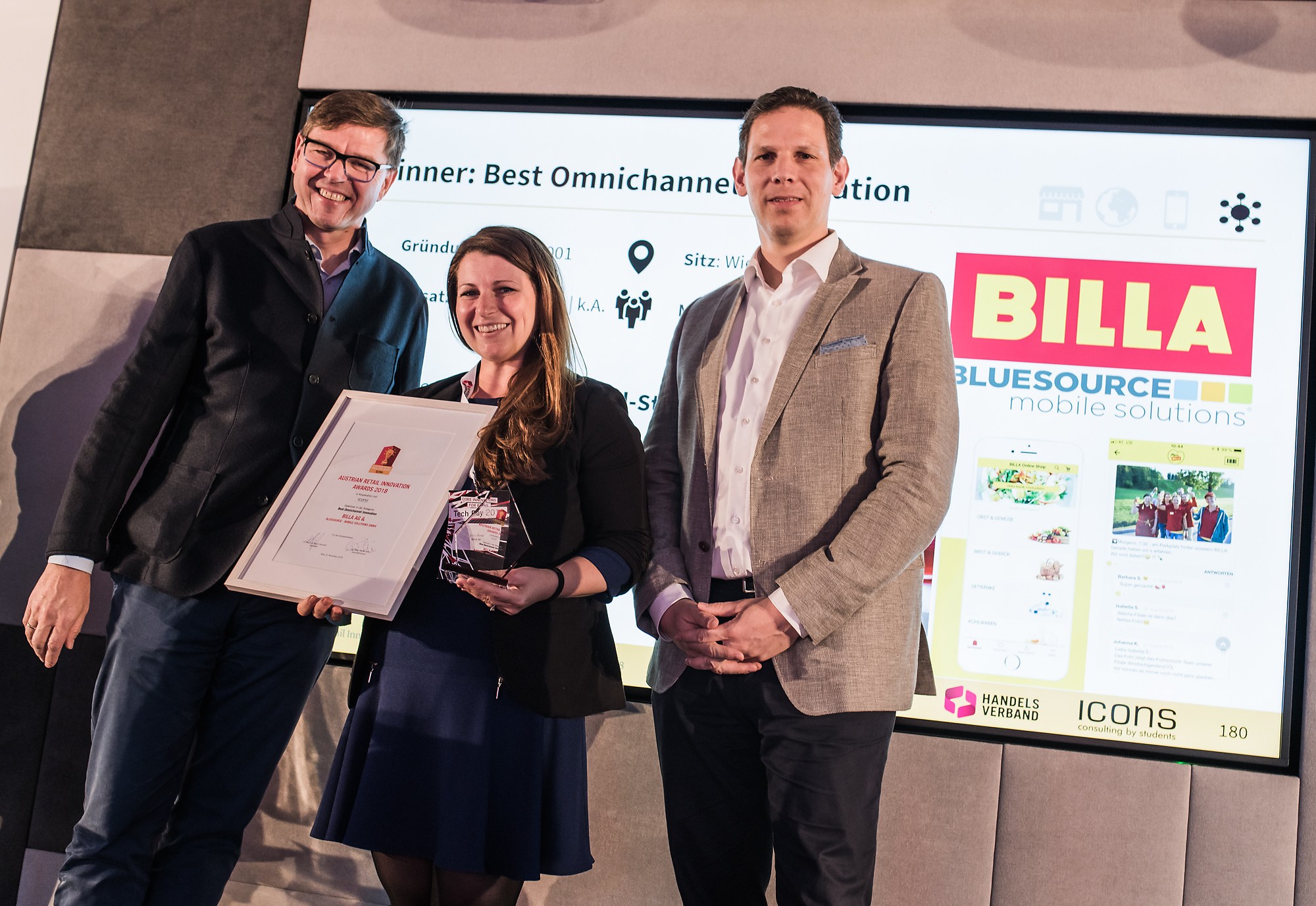 - Billa für seine 360° Omnichannel-Strategie, welche u.a. die Integration eines Drive-Ins in den Billa Onlineshop, den Fokus auf die Digitale Lehre in den e-Commerce Filialen sowie die App Mein Billa, welche von bluesource umgesetzt wurde, umfasst.