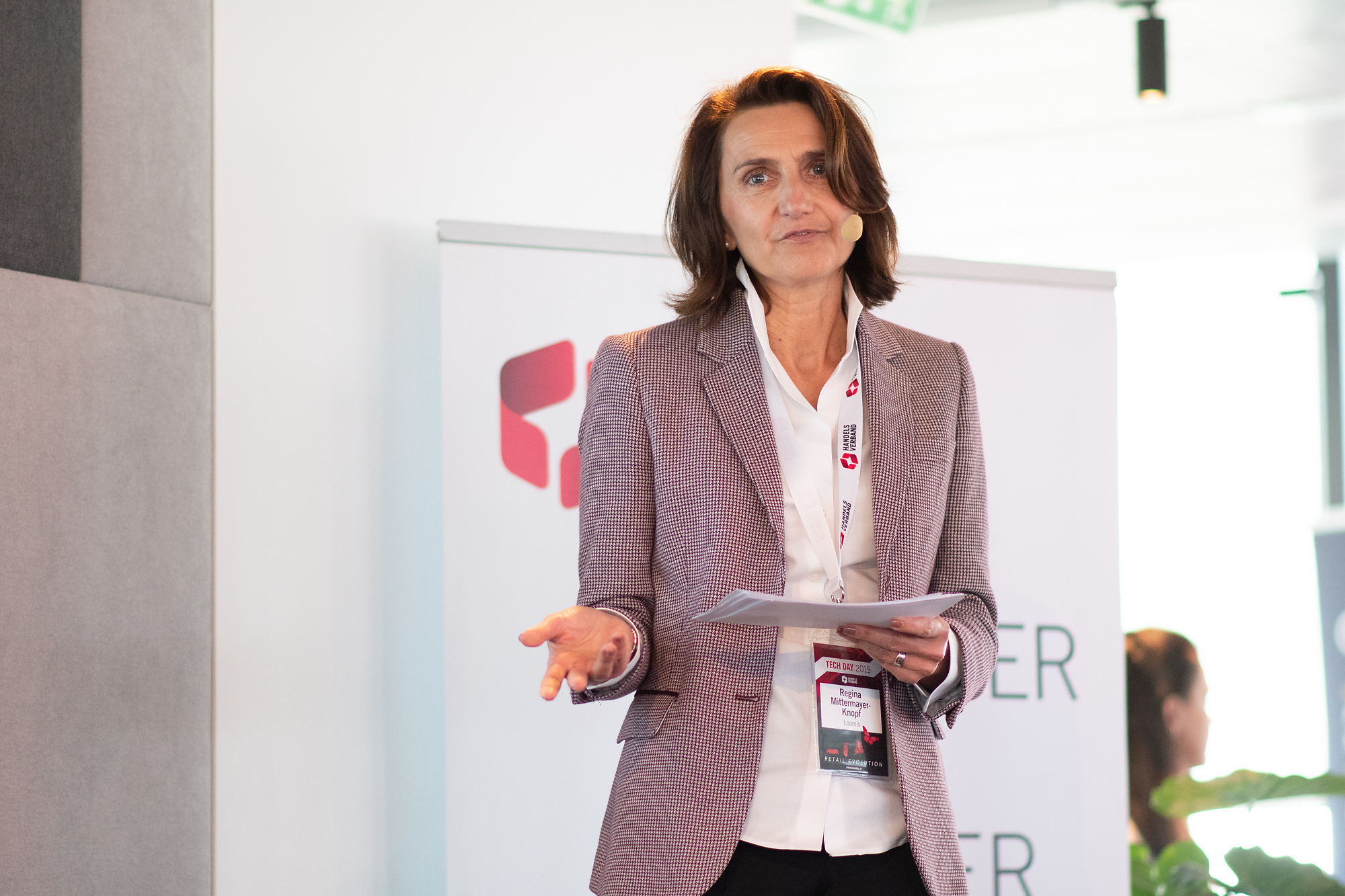 Pitch Trainerin Denise Vorraber – Mitglied im illustren „Forbes 30 unter 30“ – übernahm die dritte Keynote beim TECH DAY 2019. Die junge Gründerin erklärte, warum 9 von 10 Startups scheitern und welche 10 Fehler beim Pitching unbedingt vermieden werden müssen: kein Ziel – kein One-Liner – keine Vision – keine Konkurrenzanalyse – keine Intellectual Property – keine Backup-Slides – kein Üben – keine Authentizität – zu nervös – falsche Körpersprache. Ihr abschließender Rat an alle Gründer: "Fake it till you feel it!"