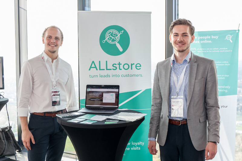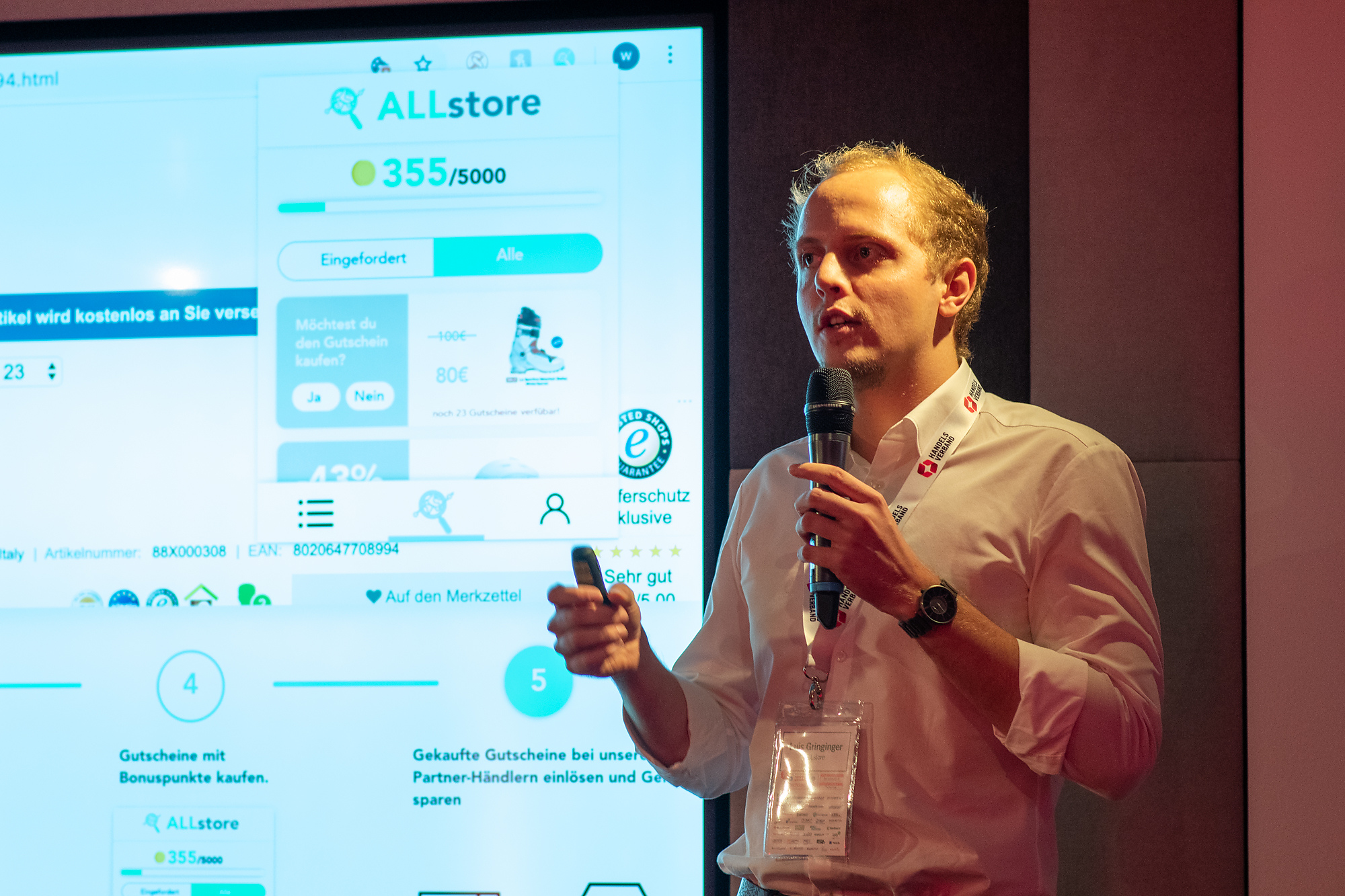 Simon Hasenauer (Co-Founder und Geschäftsführer von Warrify), Peter Szekeres (CEO und Co-Founder von Neticle), Gerd Gfrerer (Co-Founder und CEO von eValidation Austria), Gordan Volaric (CEO von RetailQuant) und Luis Gringinger (Co-Founder und COO von ALLstore) stellten ihre Geschäftsmodelle im Rahmen von je 2-minütigen Elevator Pitches live on stage vor.