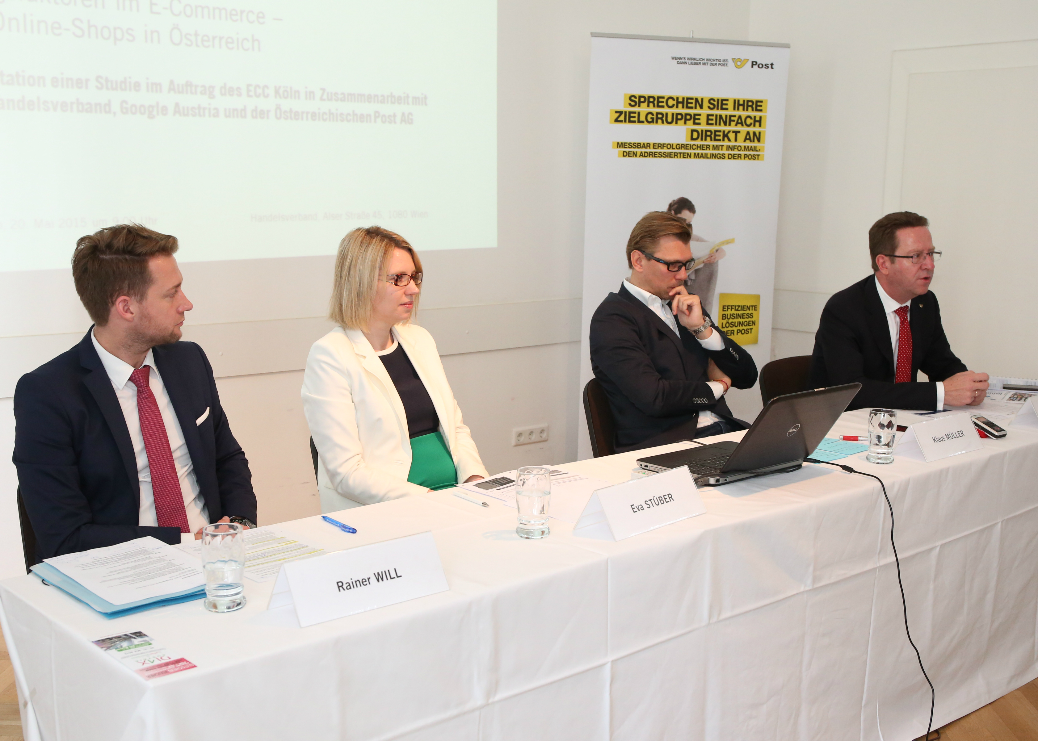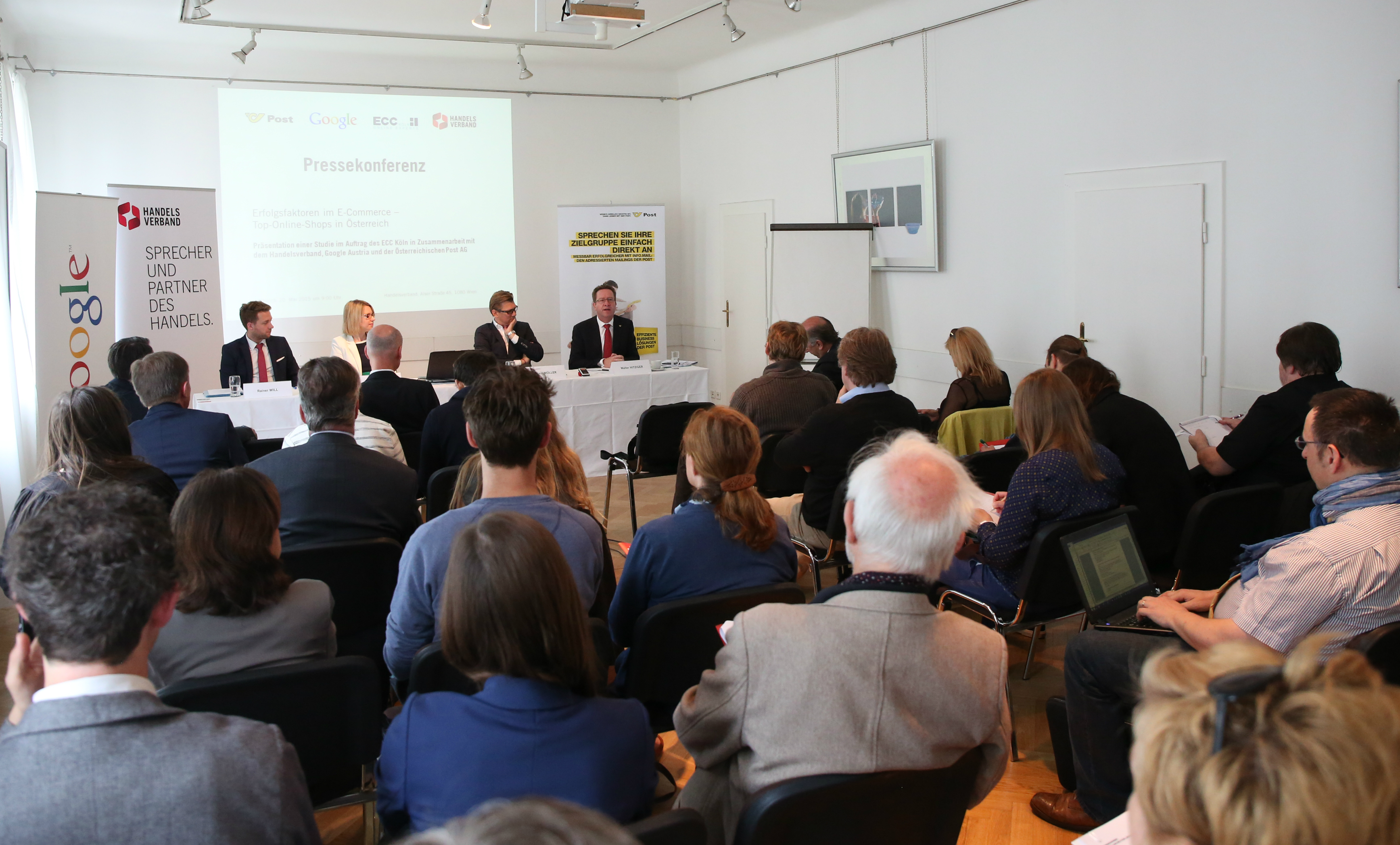 Im Rahmen der Studie „Erfolgsfaktoren im E-Commerce – Top Online-Shops in Österreich 2015“ des ECC Köln in Zusammenarbeit mit dem Handelsverband Österreich, der Österreichischen Post und Google Austria wurden 2.308 österreichische Konsumenten (internetrepräsentativ) zu ihrem Online-Kaufverhalten, ihrem Online-Shoppingerlebnis und 40 umsatzstarken österreichischen Online-Shops befragt. Ziel der Studie ist es, die relevanten Kriterien für exzellente Online-Shops aus Kundensicht herauszuarbeiten. Hierfür knüpft die Studie an das deutsche Studienpendant an. Die sieben Erfolgsfaktoren Websitedesign, Usability, Preis-Leistung, Sortiment, Service, Bezahlung & Check-out sowie Versand & Lieferung wurden aus Konsumentensicht hinsichtlich Relevanz und Zufriedenheit bewertet und der Einfluss der Zufriedenheit mit diesen Faktoren auf die Kundenbindung analysiert. Hierfür bewerteten die Konsumenten über 60 Einzelkriterien.