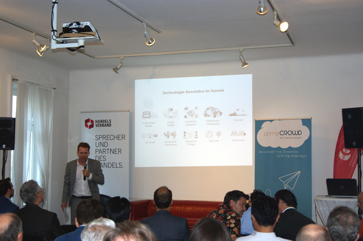 Die Moderation übernahm Handelsverband-Geschäftsführer Rainer Will, der die Gäste pünktlich um 19.00 Uhr gemeinsam mit primeCROWD Gründer und CEO Markus Kainz begrüßte. "Aktuell gibt es eine ganze Reihe technologischer Innovationen, die das Potential haben, den Handel fundamental zu verändern. Sei es Künstliche Intelligenz, Big Data, das Internet der Dinge, die Blockchain oder auch der globale Siegeszug von Plattformen wie Amazon oder Alibaba. Viele österreichische Handelsunternehmen arbeiten daher bereits erfolgreich mit Startups zusammen. Andere gehen sogar noch weiter und haben eigene Accelerator-Programme gestartet", so Will.