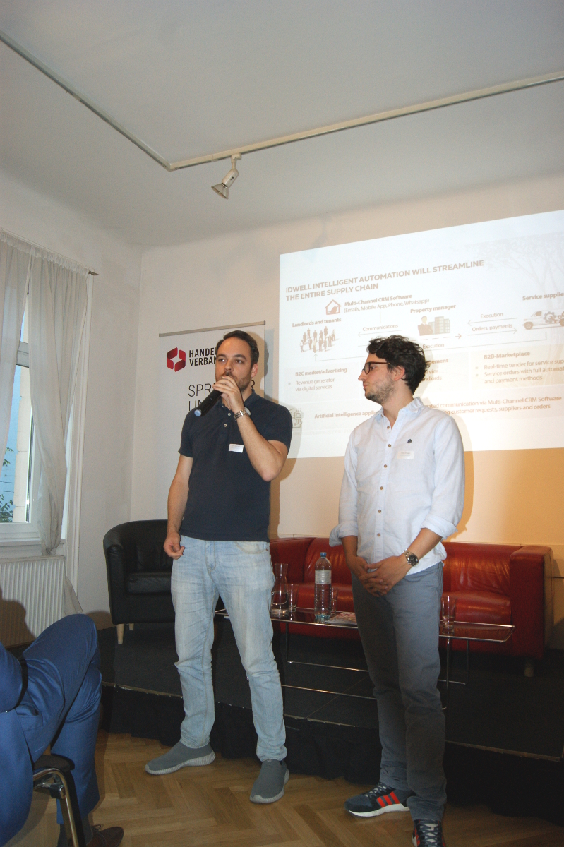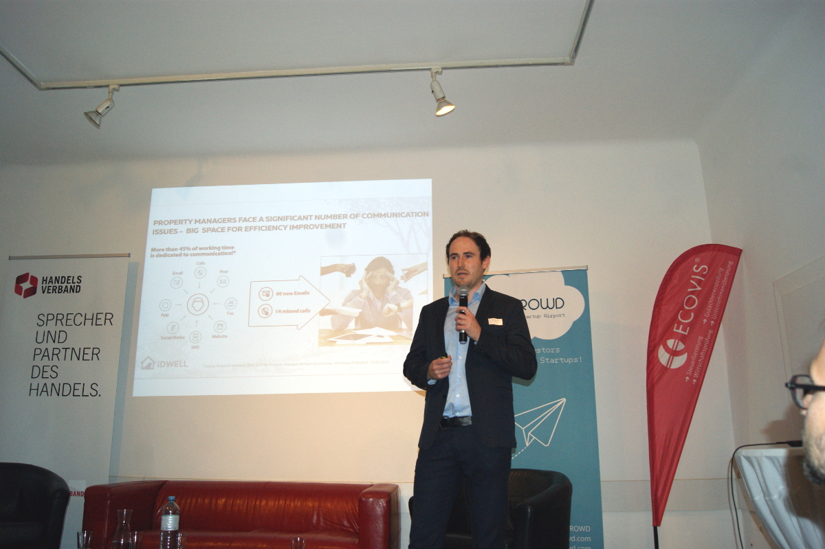 Im Anschluss an das Panel folgte ein Pitch von Alexander Roth, Mastermind des Startups iDWELL - eine digitale CRM-Software, die Arbeitsprozesse automatisiert und die Kommunikation zwischen Eigentümern, Mietern und Hausverwaltung optimiert.